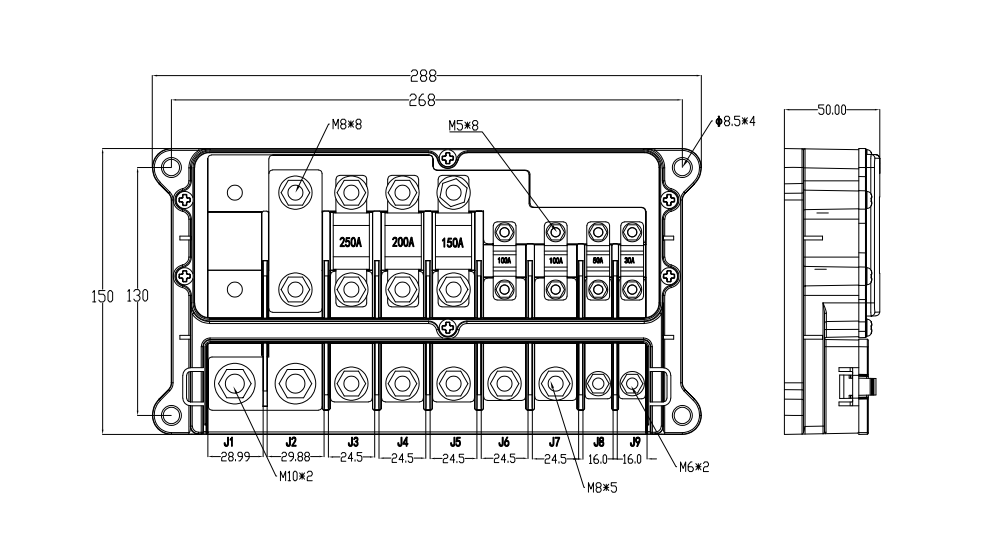 输入端 M10螺柱,输出端 M10、M8、M6螺柱 |